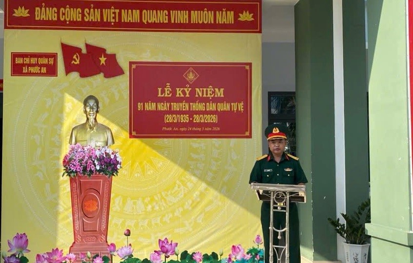 Trong không khí phấn khởi của những ngày tháng Ba lịch sử, sáng ngày 24-3, Ban Chỉ huy Quân sự (CHQS) xã Phước An đã trang trọng tổ chức Lễ kỷ niệm 91 năm Ngày truyền thống lực lượng Dân quân tự vệ Việt Nam (28/3/1935 – 28/3/2026).