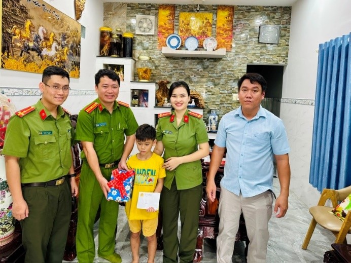 Theo đó, hai cháu được tặng quà là: Trần Bảo Thùy Dương, học sinh lớp 3 Trường Tiểu học Phước An (hiện ở ấp Bàu Bông, xã Phước An) và Nguyễn Thiện Minh, học sinh lớp 3 Trường Tiểu học Long Thọ (hiện ở ấp 3, xã Phước An); mỗi suất quà gồm sách vở và 1 triệu đồng tiền mặt nhằm giúp các em có thêm điều kiện bước vào năm học mới. Tại buổi đến thăm, Thiếu tá Phạm Mạnh Hùng, Trưởng Công an xã cũng đã ân cần động viên, chia sẻ, khích lệ tinh thần các em vươn lên trong học tập và rèn luyện.