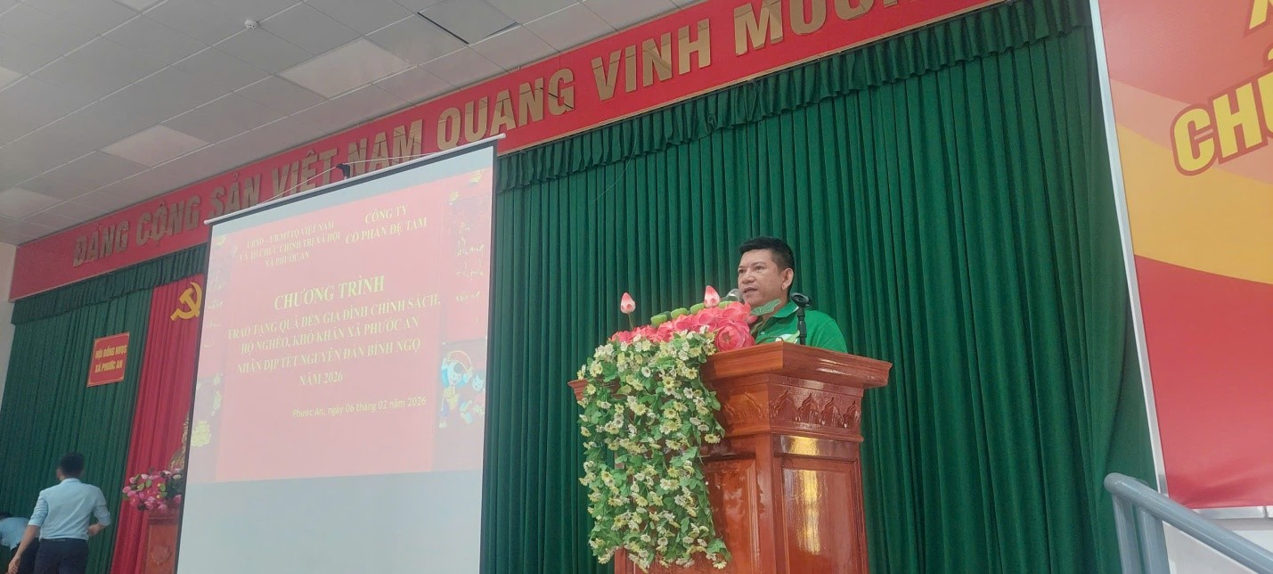 Phát biểu tại buổi lễ, ông Nguyễn Văn Dũng bày tỏ sự trân trọng và cảm ơn sâu sắc đến Công ty Cổ phần Đệ Tam và cá nhân ông A Mỏn đã nhiều năm liền bền bỉ đồng hành cùng chính quyền địa phương trong công tác an sinh xã hội, chăm lo Tết cho các gia đình chính sách, hộ nghèo và hộ có hoàn cảnh khó khăn, giúp bà con có một cái Tết ấm áp, vui tươi và đầy nghĩa tình.