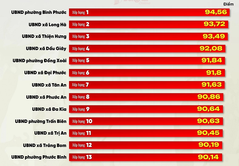 Ngày 26/01/2026, UBND tỉnh Đồng Nai ban hành Quyết định số 347/QĐ-UBND công bố Chỉ số cải cách hành chính (CCHC) năm 2025 đối với các sở, ban, ngành và UBND cấp xã trên địa bàn tỉnh. Theo kết quả công bố, xã Phước An đạt 90,86 điểm, được xếp loại xuất sắc, đứng thứ 8/95 xã, phường trong toàn tỉnh.