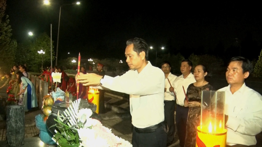 Đồng chí Huỳnh Minh Đức – Phó Bí thư, Chủ tịch UBND xã cùng các đồng chí trong Ban Thường vụ Đảng ủy xã dâng hoa, dâng hương tại các phần mộ bia của các Anh hùng liệt sỹ, Anh hùng lực lượng vũ trang, các mẹ Việt Nam anh hùng