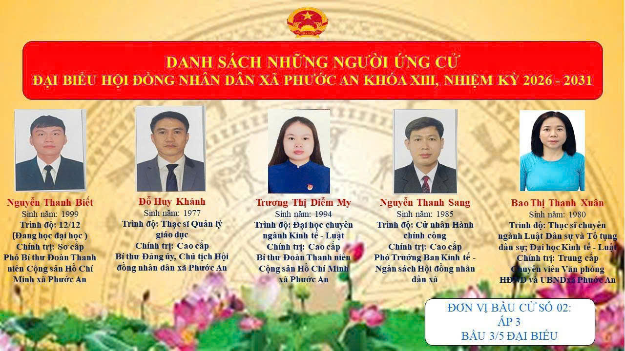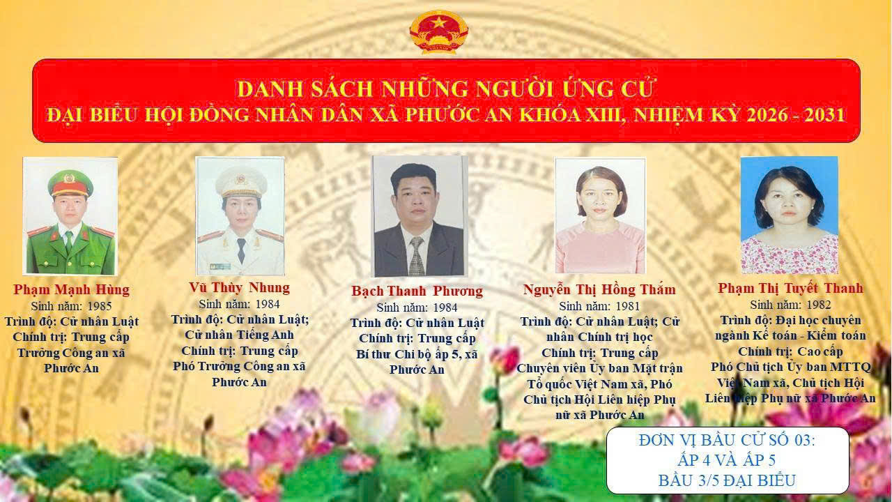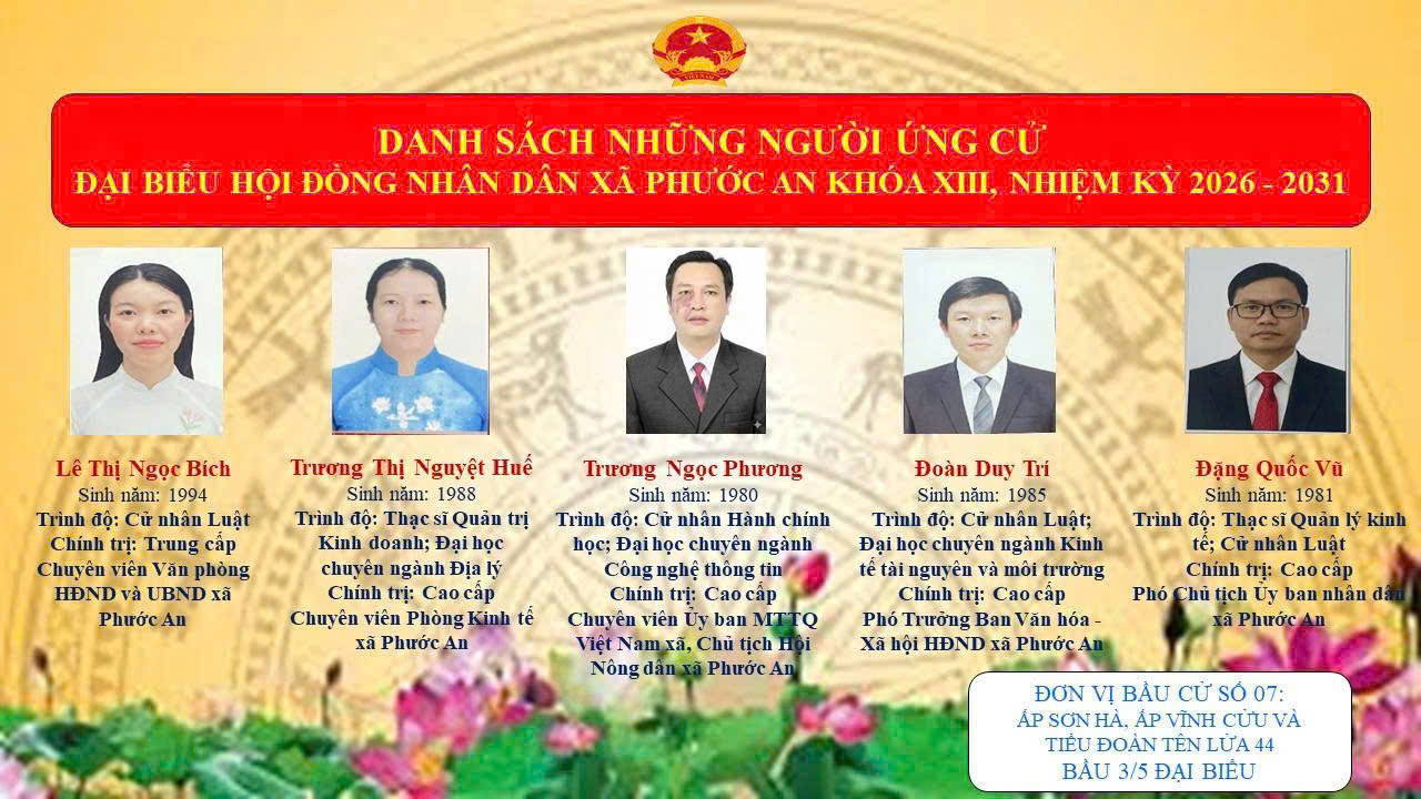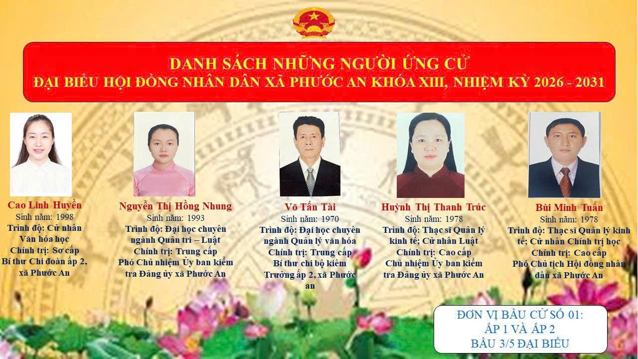<div style="text-align: center;">Danh sách những người ứng cử đại biểu Hội đồng nhân dân xã Phước An khóa XIII, nhiệm kỳ 2026 -2031