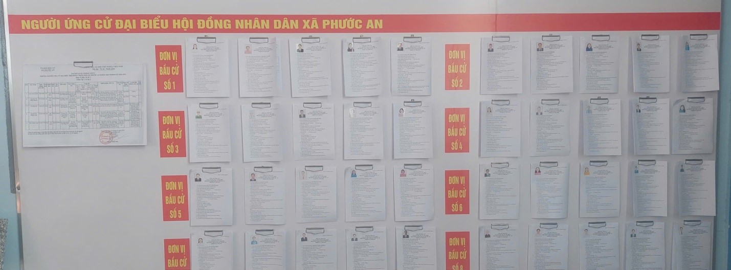 Ngày 27/02/2026, tại các điểm bầu cử trên địa bàn xã Phước An đã đồng loạt thực hiện việc niêm yết danh sách và tiểu sử tóm tắt của 40 người ứng cử đại biểu Hội đồng nhân dân xã khóa XIII, nhiệm kỳ 2026–2031 theo từng đơn vị bầu cử, bảo đảm công khai, minh bạch và đúng quy định của pháp luật.<br />