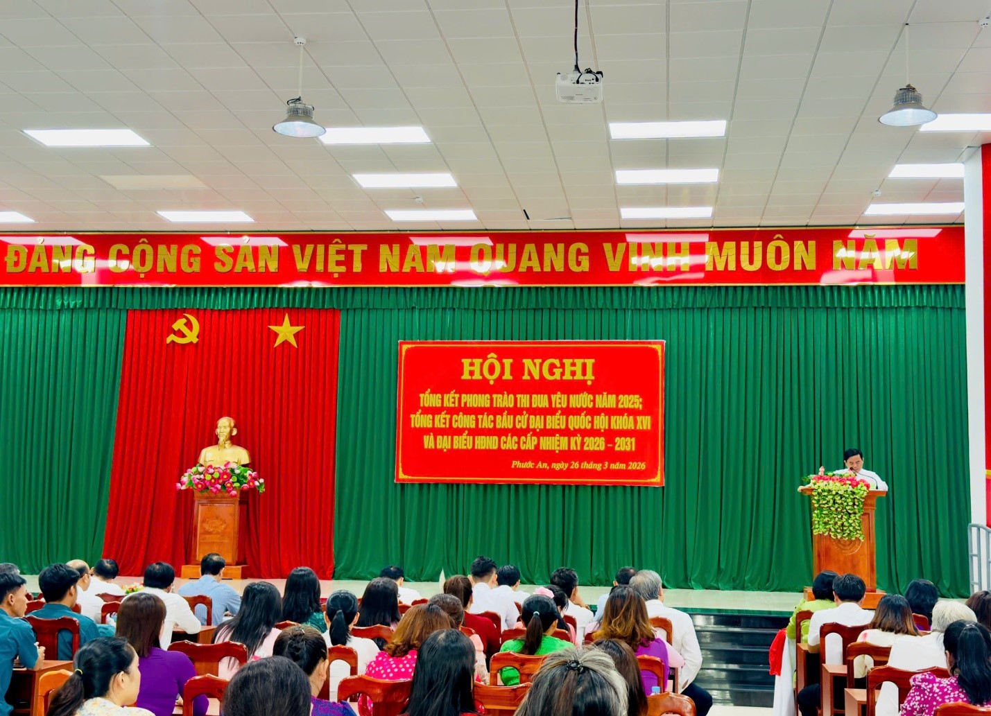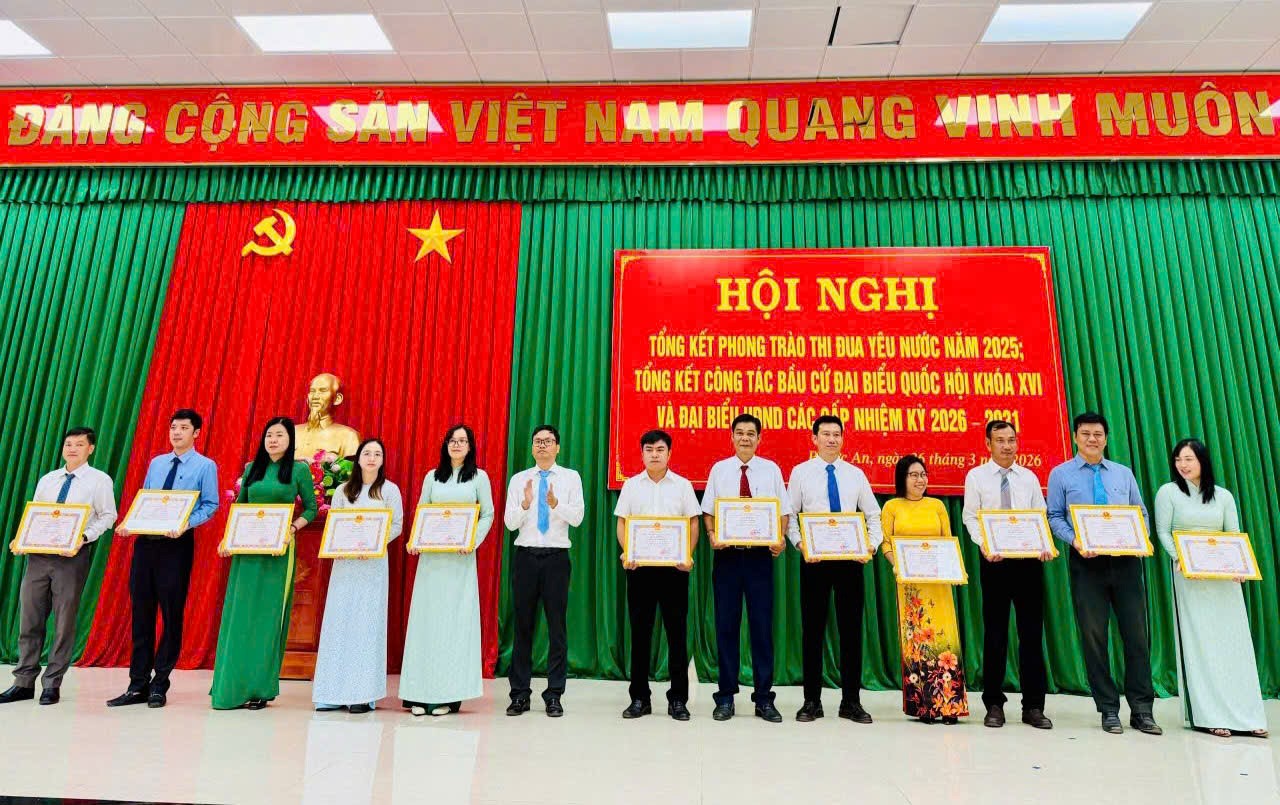 Sáng ngày 26/3/2026, tại Trung tâm Dịch vụ Tổng hợp xã Phước An, UBND xã đã tổ chức Hội nghị tổng kết phong trào thi đua yêu nước năm 2025; tổng kết công tác bầu cử đại biểu Quốc hội khóa XVI và đại biểu HĐND các cấp nhiệm kỳ 2026–2031; đồng thời trao giải Hội thi trang trí trụ sở mừng Đảng, mừng Xuân 2026.
