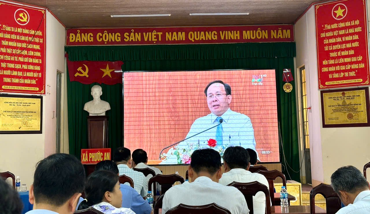 Tại điểm cầu Đảng ủy xã Phước An, cán bộ, đảng viên thuộc các chi, đảng bộ trực thuộc tham dự sinh hoạt trực tuyến tại các điểm cầu: hội trường UBND xã; hội trường Công an xã; hội trường Trung tâm Dịch vụ tổng hợp xã; trụ sở cơ quan Quân sự xã và các trường học trên địa bàn.<br />