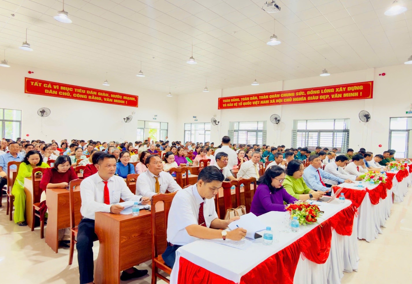 Tham dự hội nghị có lãnh đạo Đảng ủy, HĐND, UBND, Ủy ban MTTQ Việt Nam xã; đại diện các ban, ngành, đoàn thể; các đơn vị sự nghiệp, trường học; cùng các tập thể, cá nhân tiêu biểu trên địa bàn.