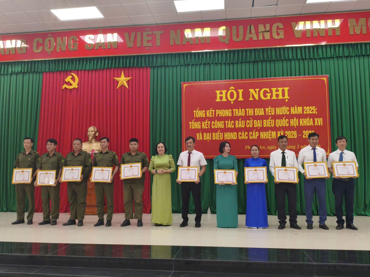 Sáng ngày 26/3/2026, tại Trung tâm Dịch vụ Tổng hợp xã Phước An, UBND xã đã tổ chức Hội nghị tổng kết phong trào thi đua yêu nước năm 2025; tổng kết công tác bầu cử đại biểu Quốc hội khóa XVI và đại biểu HĐND các cấp nhiệm kỳ 2026–2031; đồng thời trao giải Hội thi trang trí trụ sở mừng Đảng, mừng Xuân 2026.