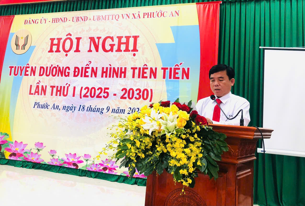 Sáng ngày 18/9/2025, Đảng uỷ, HĐND, UBND, Uỷ ban MTTQ Việt Nam xã Phước An tổ chức Hội nghị điển hình tiên tiến lần thứ I (2025-2030). Dự Hội nghị có các đồng chí: Phạm Sỹ Linh, Phó Bí thư Thường trực Đảng ủy; Huỳnh Minh Đức, Phó Bí thư, Chủ tịch UBND xã; các đồng chí Ủy viên Ban Thường vụ Đảng ủy, Thường trực HĐND, lãnh đạo UBND, UBMTTQ Việt Nam xã; trưởng các đoàn thể cấp xã; các đơn vị trực thuộc xã và các đại biểu là những tập thể và cá nhân điển hình tiên tiến được tuyên dương.