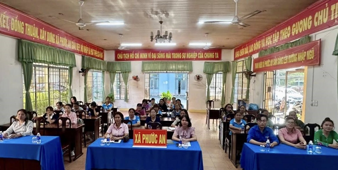 Tại điểm cầu xã Phước An, bà Phạm Thị Tuyết Thanh, Phó chủ tịch Ủy ban MTTQVN, Chủ tịch Hội LHPN xã dự và chủ trì Hội nghị, cùng dự có các đồng chí trong Ban Chấp hành Hội LHPN xã và Chi hội phó Chi hội Phụ nữ trên địa bàn xã.