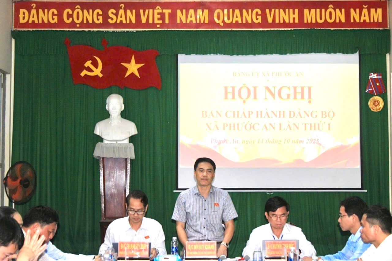 Chiều ngày 14/10/2025, tại Hội trường UBND xã, Ban Chấp hành (BCH) Đảng bộ xã Phước An đã tổ chức Hội nghị lần thứ nhất, nhiệm kỳ 2025-2030 nhằm đánh giá công tác lãnh đạo thực hiện nhiệm vụ chính trị, xây dựng Đảng trong quý III và triển khai nhiệm vụ trọng tâm quý IV năm 2025. Đồng chí Đỗ Huy Khánh – Bí thư Đảng ủy, Chủ tịch HĐND xã chủ trì hội nghị.