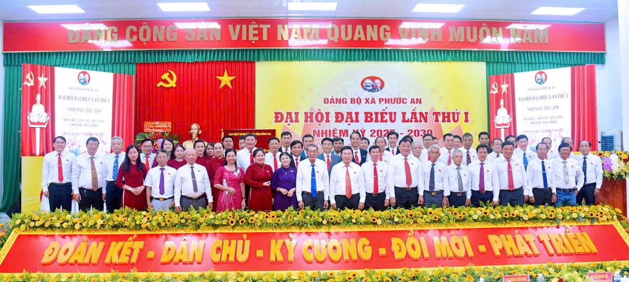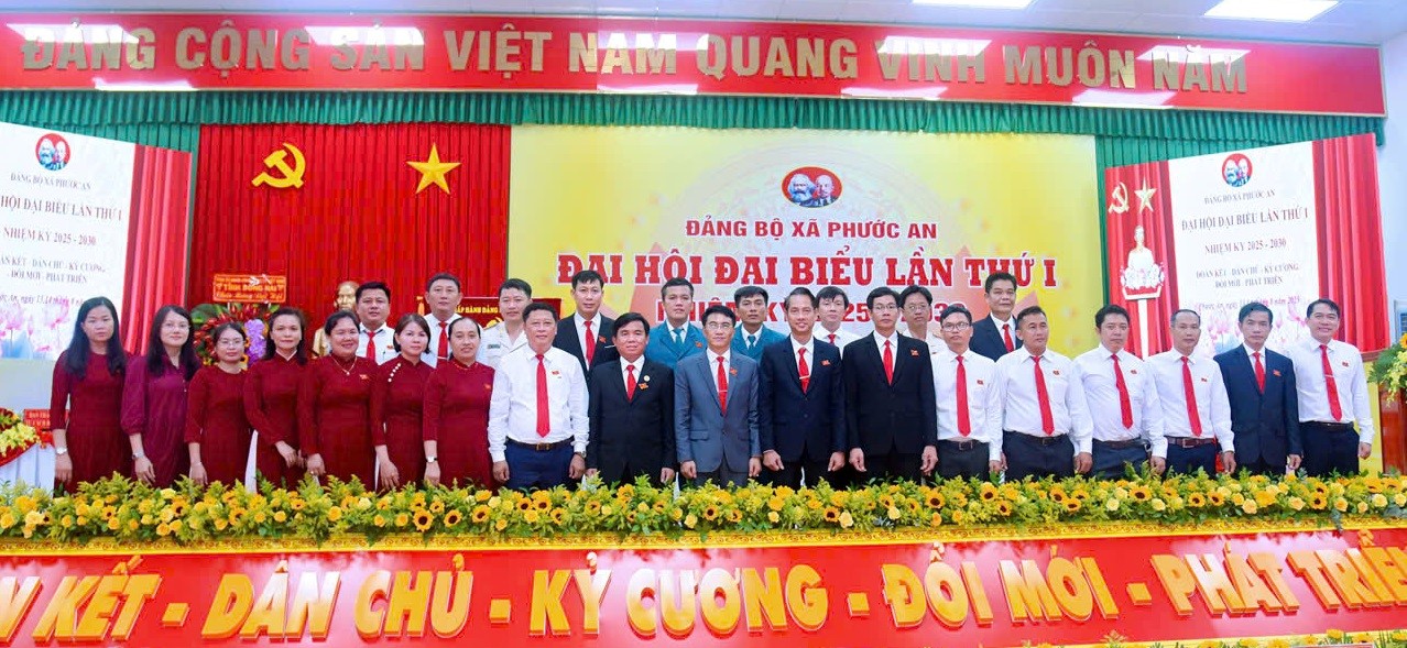 Ban Chấp hành Đảng bộ xã xã Phước An lần thứ I, nhiệm kỳ 2025-2030 chụp hình lưu niệm tại Đại hội